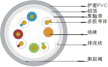 屏蔽結(jié)構(gòu):鋁箔,聚脂帶,排流線